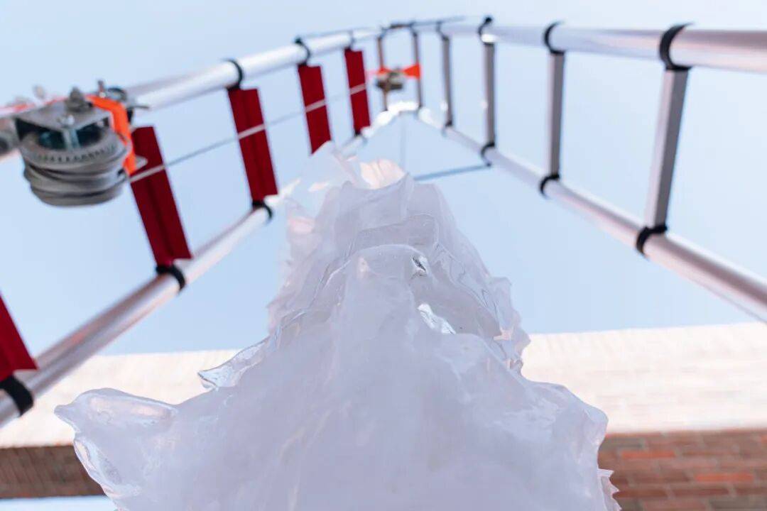 冯至炫的《冰川塔》以冰为媒介,模拟冰川的地质形态,将自然的力量凝结于雕塑之中,赋予冰雪以时间与结构的重量。