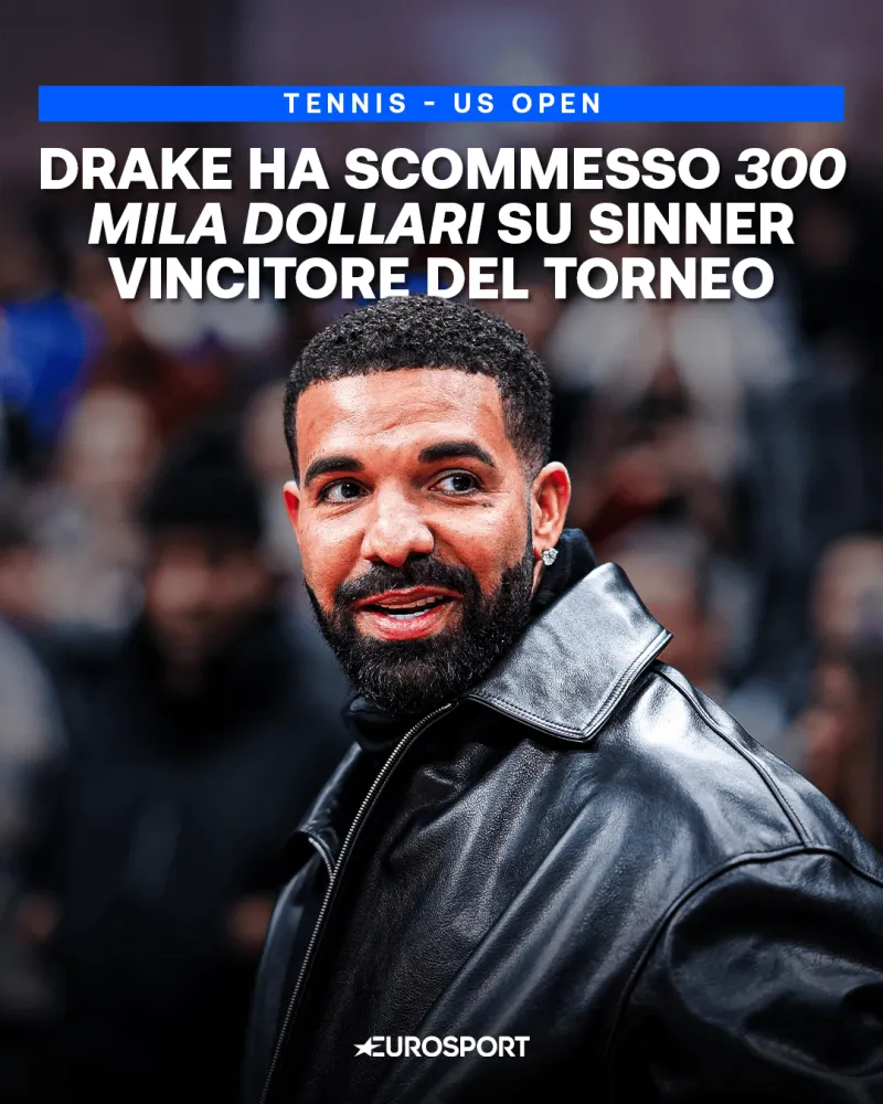 虎扑09月03日讯 据欧洲体育报道,加拿大说唱巨星“公鸭”德雷克刚刚下注30万美元压辛纳赢得今年美网冠军。如果辛纳夺冠,德雷克将赢得20.7万美元。