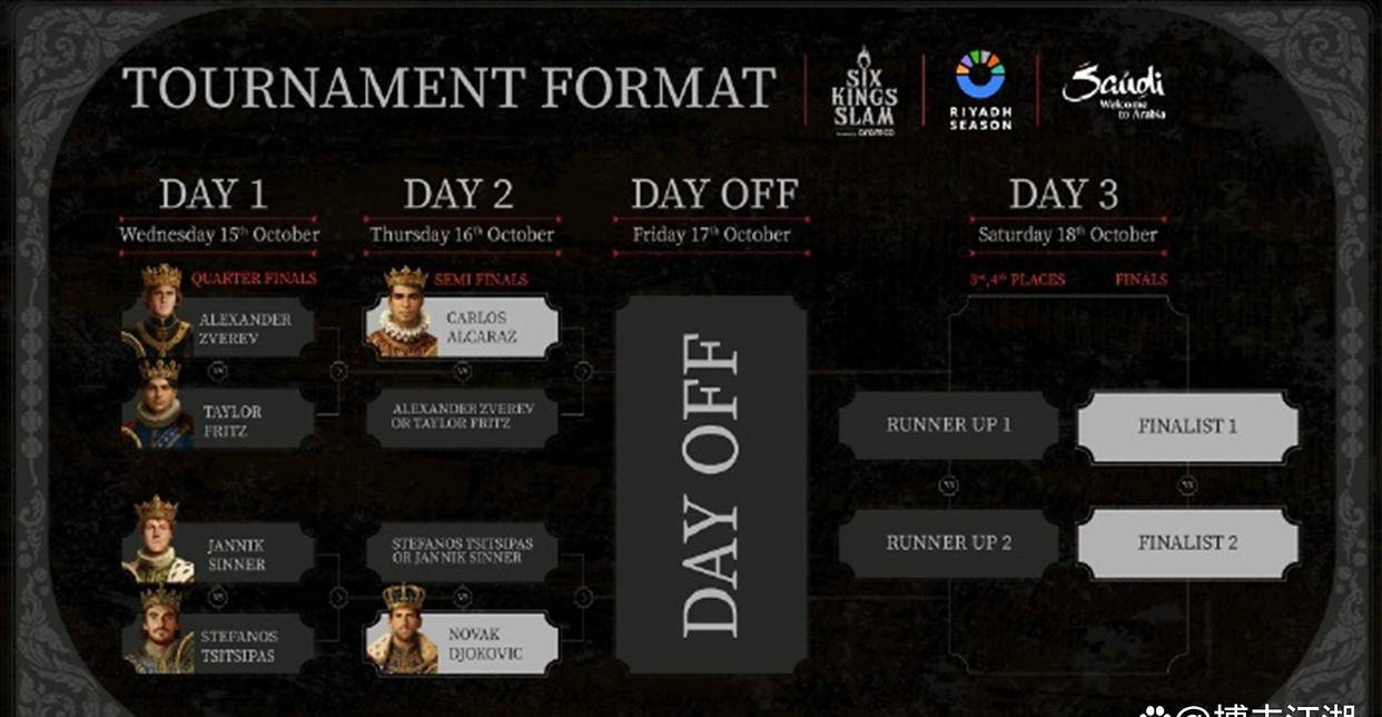 值得注意的是,参与此次比赛的六位选手分别是:阿尔卡拉兹、德约科维奇、弗里茨、辛纳、西西帕斯和兹维列夫。除了西西帕斯之外,其他五位都是世界顶尖的高手,因此受邀参加这样的赛事也不足为奇。