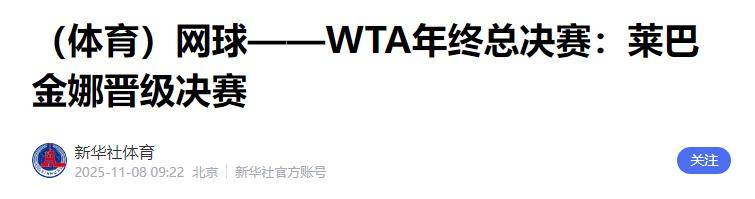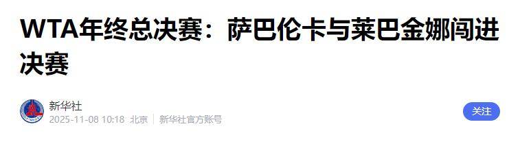 接下来的决赛,莱巴金娜能否继续保持如此火热的状态,战胜世界第一萨巴伦卡,赢得职业生涯首个年终总决赛冠军奖杯?答案即将揭晓。