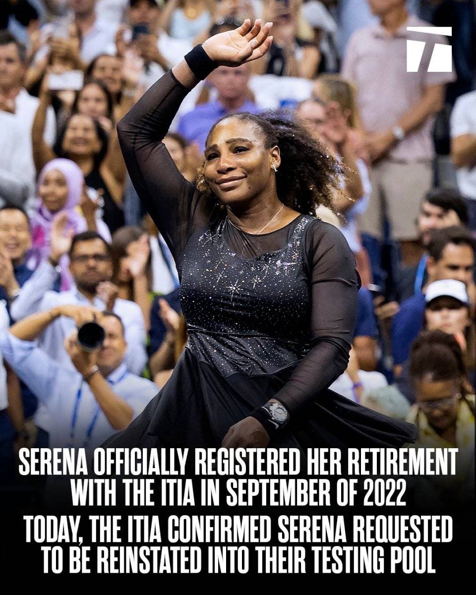 小威廉姆斯的名字出现在了ITIA10月6日的测试人员名单之中,根据国际网球诚信机构的规定,在测试名单中的人员必须全年提供日常行踪。任何想要重返赛场的人必须在名单中待满6个月时间。根据这一时间来推算,小威最早在2026年4月可以回归。