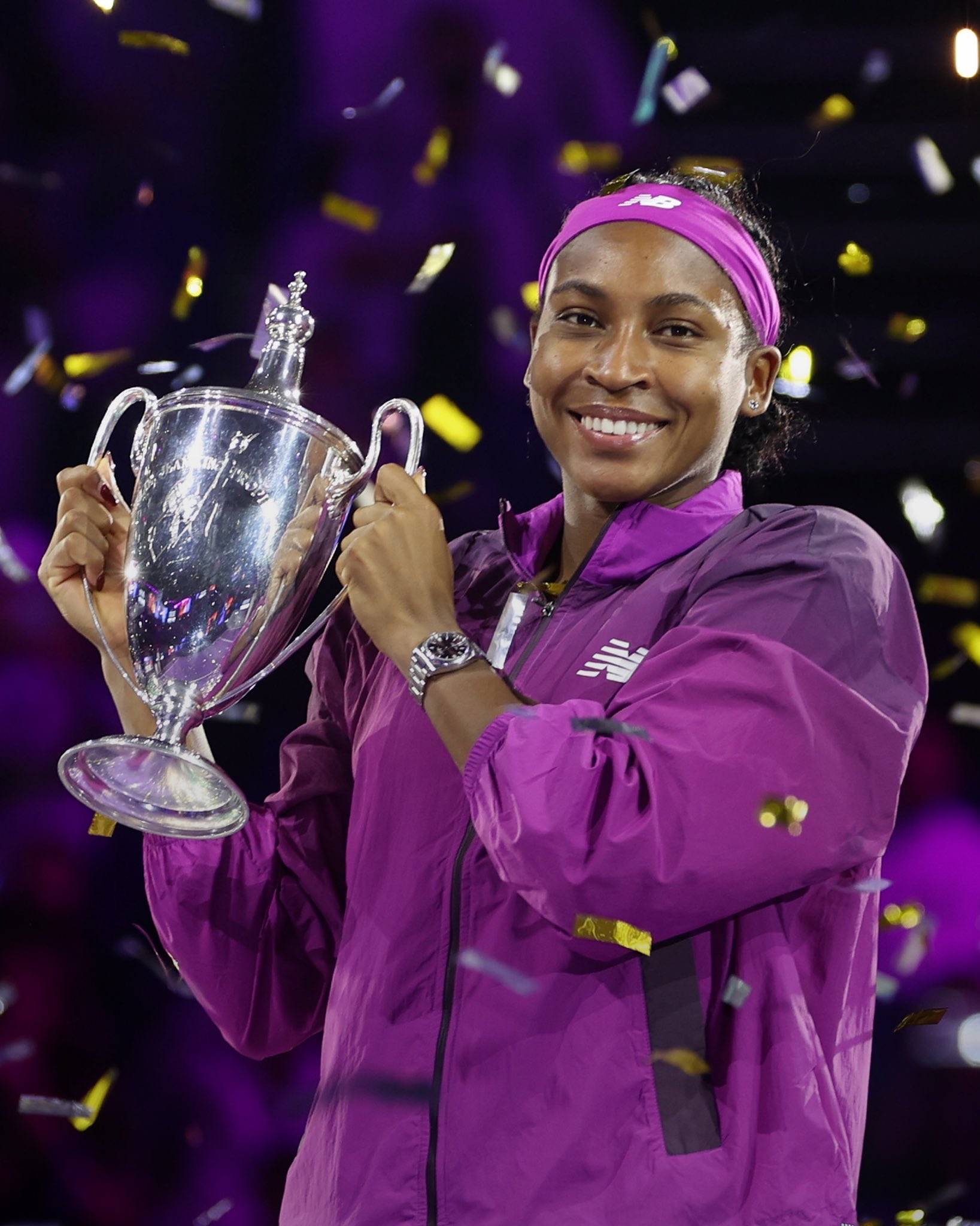 不仅如此,穿上凤袍后的高芙自信心还在延续。11月初,她在年终总决赛小组赛上战胜了同胞佩古拉、波兰选手斯瓦泰克杀进四强;半决赛,高芙两盘直落战胜了白俄罗斯选手萨巴伦卡,首次闯进年终总决赛决赛;决赛在先失一盘的不利情况下,她连扳两盘逆转战胜中国选手郑钦文,获得职业生涯首个年终总决赛的冠军。