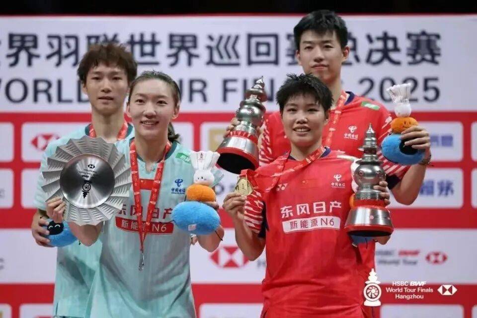 2025世界羽联年终总决赛,中国羽毛球队冯彦哲/黄东萍混双捧杯、蒋振邦/魏雅欣获得混双亚军,石宇奇、王祉怡、梁伟铿/王昶分别摘得男单、女单和男双亚军。