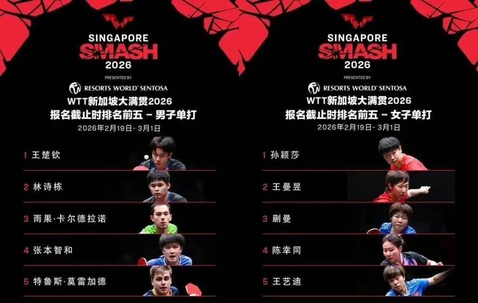 WTT新加坡大满贯2026将在新加坡体育中心举行,届时各路好手将共同争夺2000点世界排名积分。