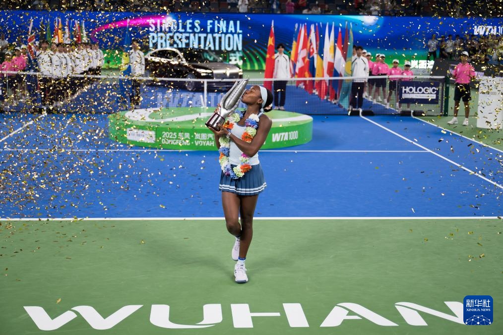 当日,在2025年WTA武汉网球公开赛女子单打决赛中,美国选手高芙2比0战胜美国选手佩古拉,夺得冠军。